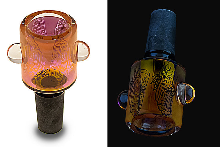 Gaze in awe at our fume glass bowl—laid with lusciously intricate patterns!