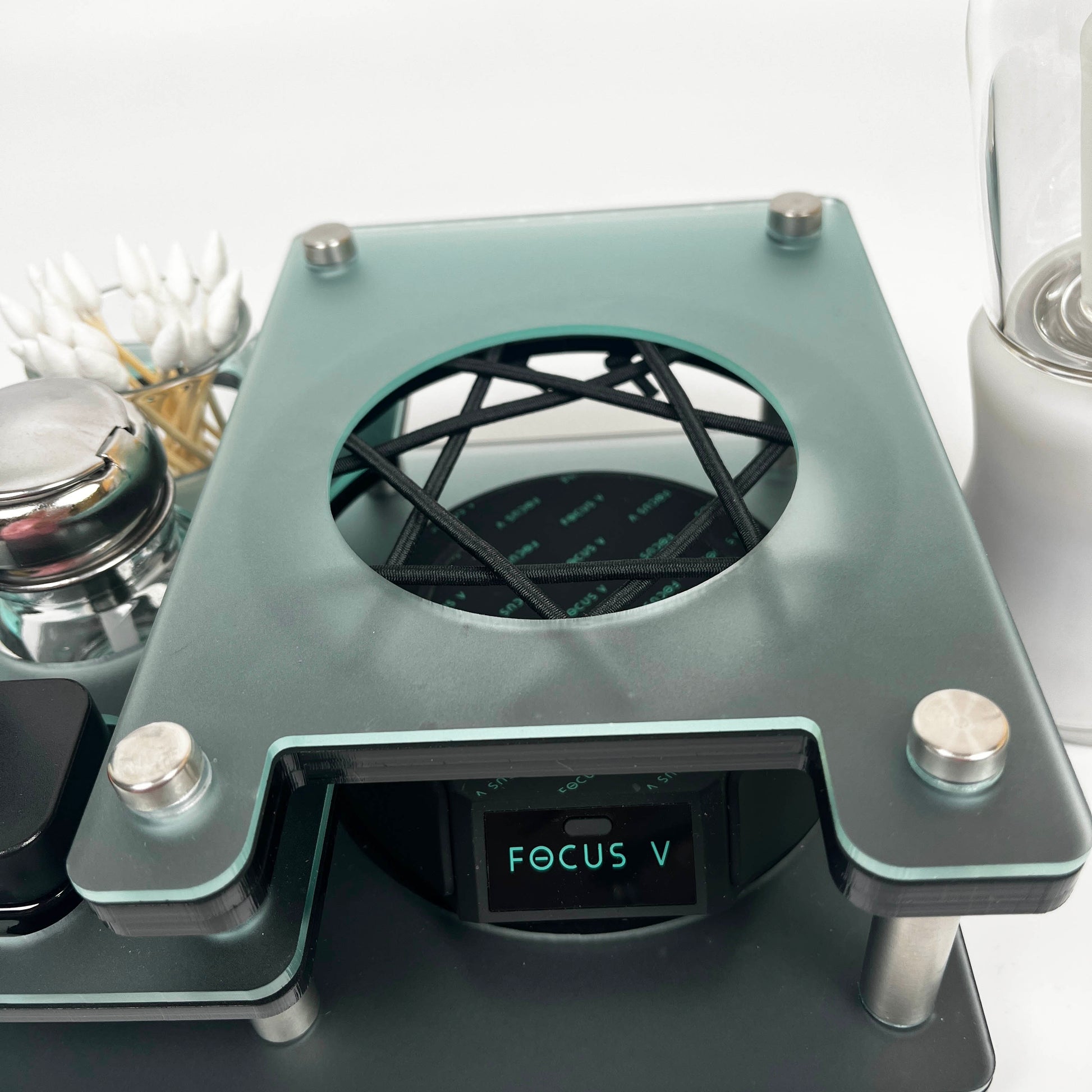 Focus V Carta 2 Rig Station Dab Session Organizer and Cleaning Tray That Holds the Charging Dock With ISO Pump and Swab Beaker