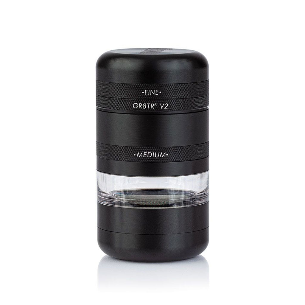 The gold standard in grinder technology, the GR8TR V2 Series Grinder w/ Jar Screen Chamber in Matte Black is the most versatile grinder on the market. It features a deep dish grinding chamber, bonus storage, and can be broken down into a compact storage puck.
